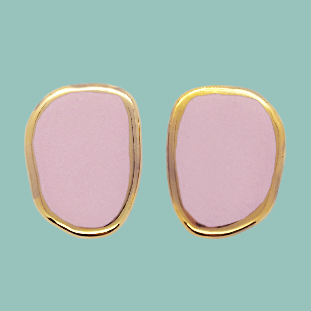 Ceramic stud earrings with a 24K Gold plating and a hypoallergenic stainless steel ear post. They are light weight and suitable for sensitive ears.