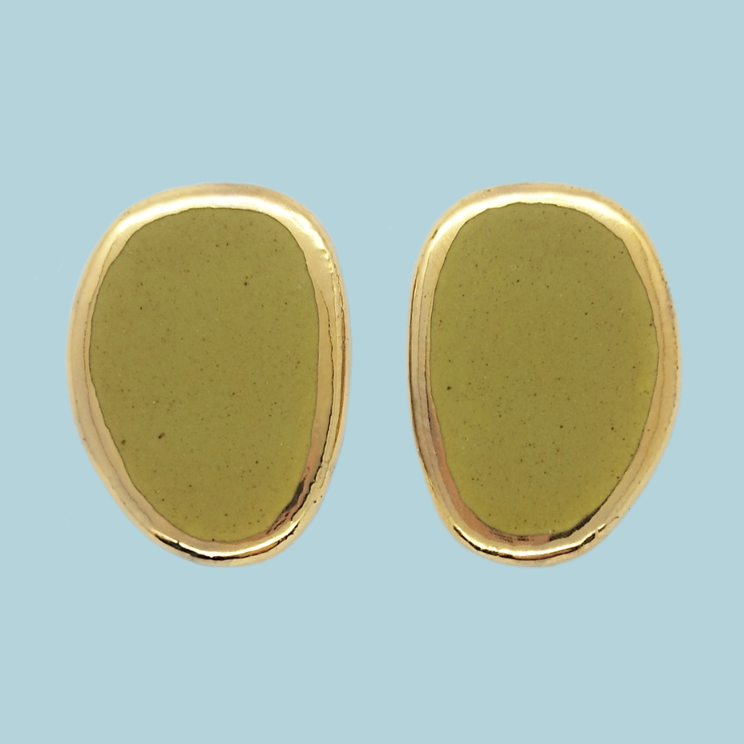 Ceramic stud earrings with a 24K Gold plating and a hypoallergenic stainless steel ear post. They are light weight and suitable for sensitive ears.