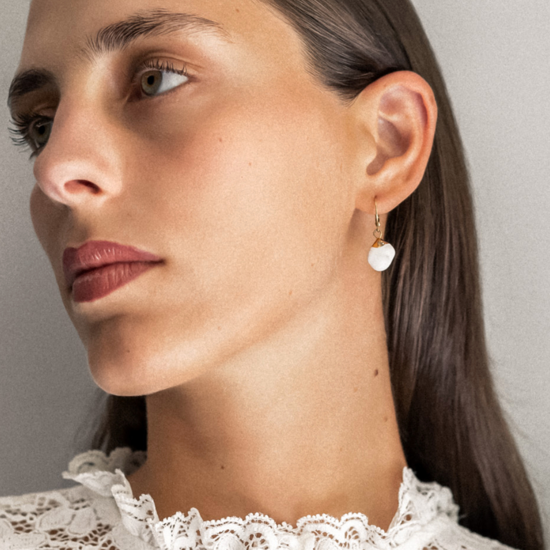 Ceramic dangle earrings with a gold plated 316L stainless steel ear hoop (12mm).