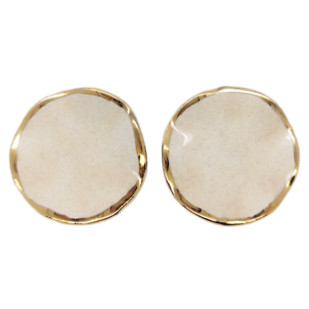 Ceramic stud earrings with a 24K Gold plating and a hypoallergenic stainless steel ear post. They are light weight and suitable for sensitive ears.
